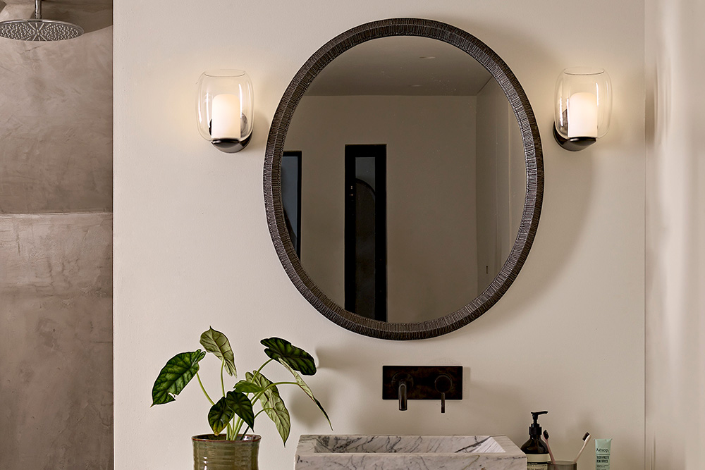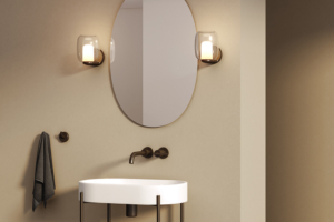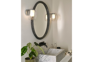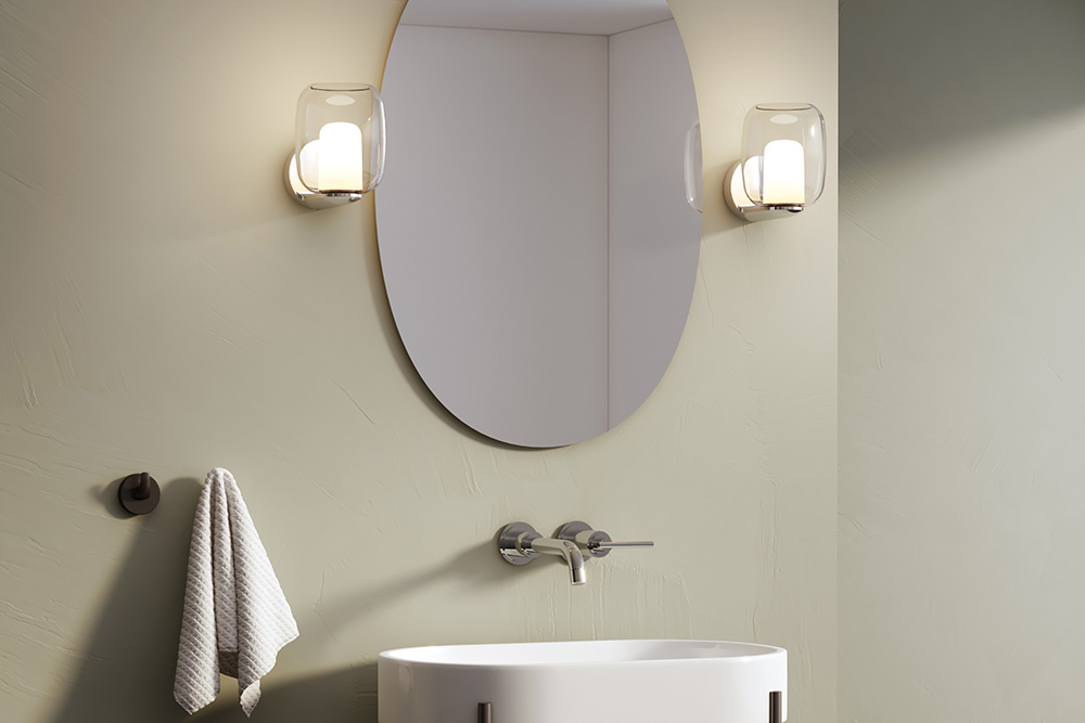 Aquina Wall vägglampa från Astro. Lampan har en handblåst glaskupa som omfamnar det inre frostade glasstycket.