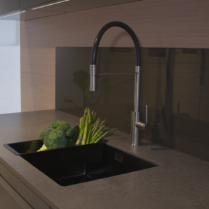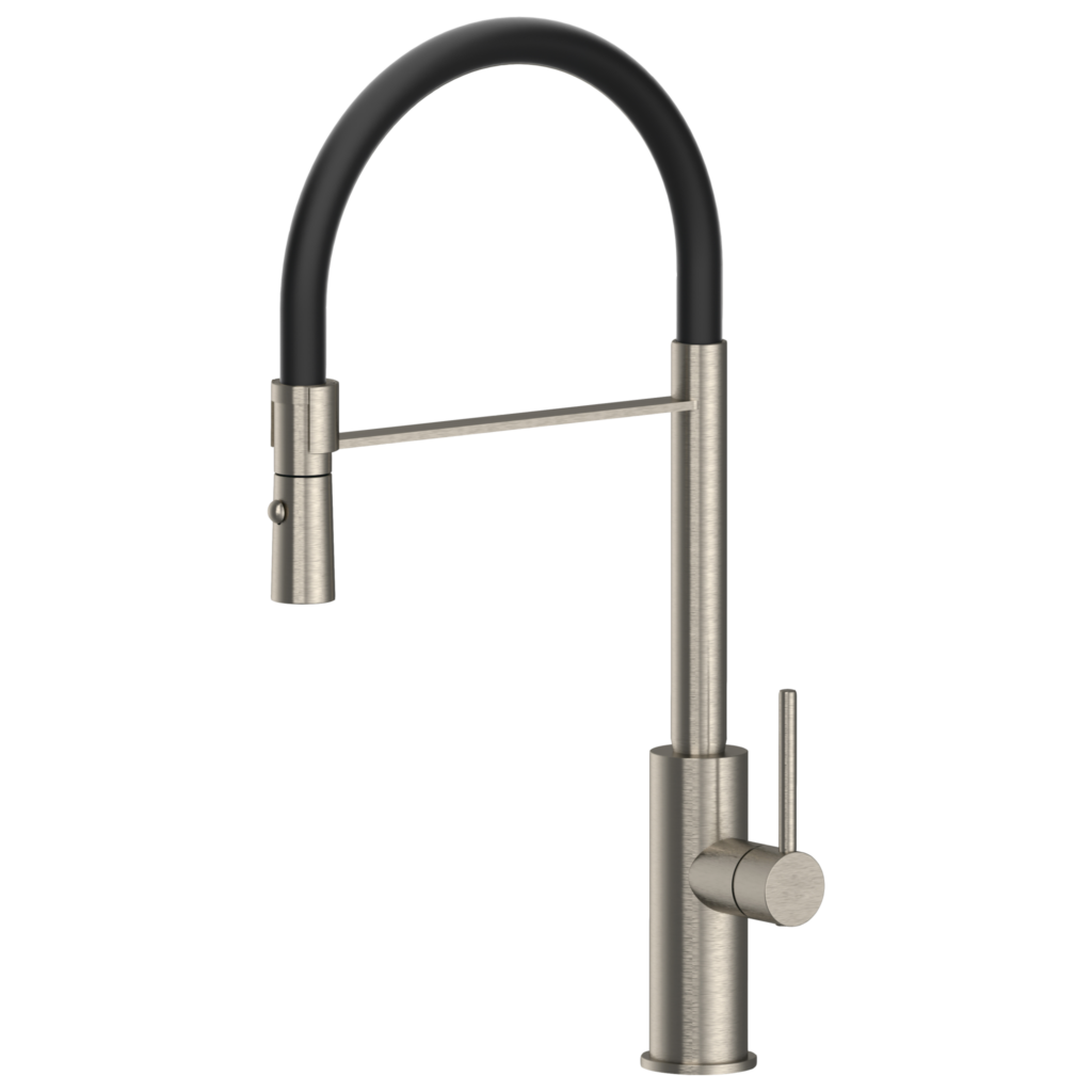 Arno F är en köksblandare från LH i 316 rostfritt stål som har en flexibel handdusch med 2 stråltyper och ett fäste för stadga. Svängradien är begränsad till 150°. Finns i 4 borstade kulörer.