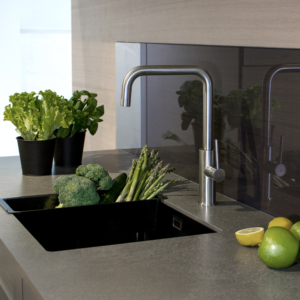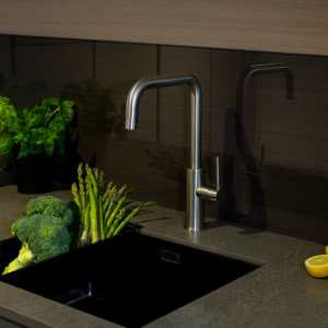 Arno K köksblandare från LH i 316 rostfritt stål som har en kantig och stilren design.