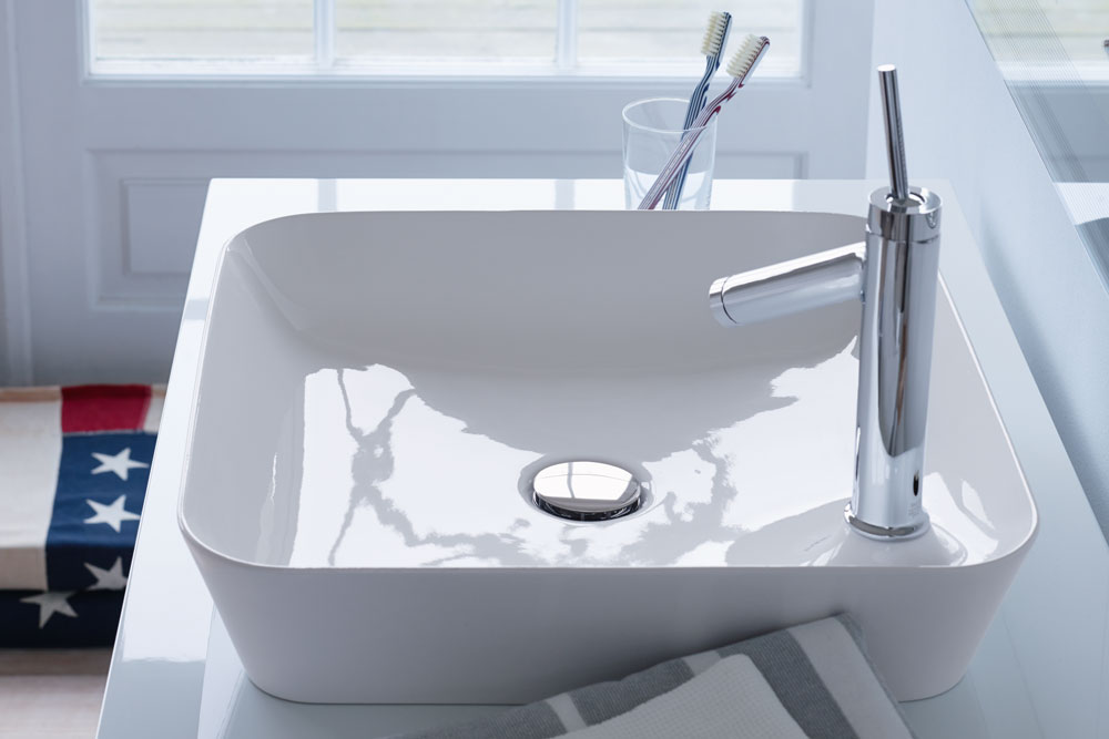 Cape cod tvättställsskål från Duravit. Philippe Starck har designat denna serie. Kompletteras med bottenventil och vattenlås. Utan bräddavlopp.