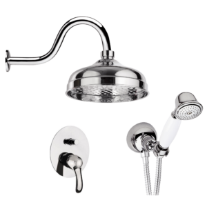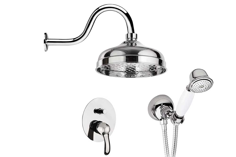 Classic inbyggnadsdusch finns för både vägg- och takplacering. Utöver att erbjuda ett mer romantiskt och traditionsenligt snitt går det även att välja huvuddusch, vred och handtag i 7 läckra färger.