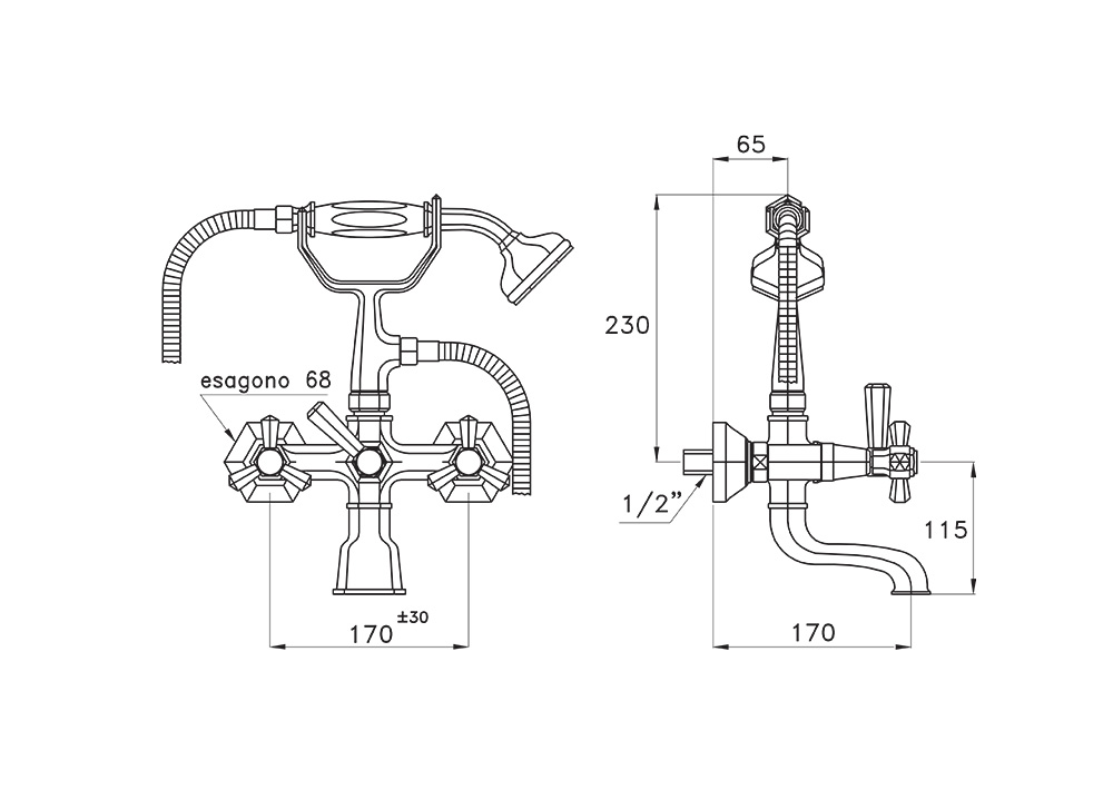 Eccelsa är med sin sexkantiga formbild den självklara valet i det romantiska badrummet. Blandaren har omkastarfunktion för att välja mellan påfyllning eller duschfunktion via handduschen.