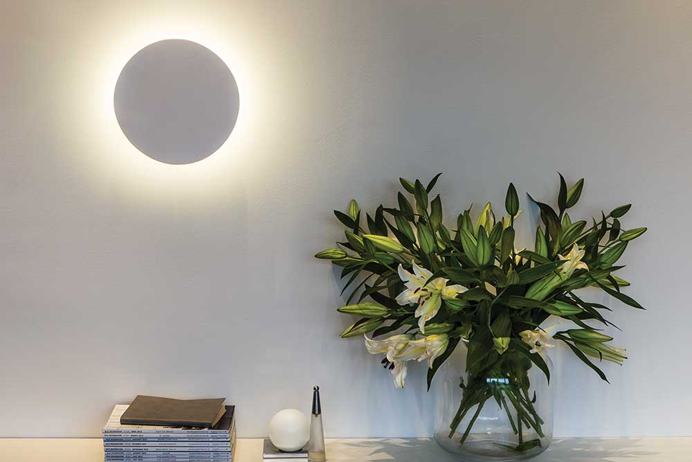 Eclipse Round 350 LED från Astro. Vägglampa som är tillverkad i gips och går alldeles utmärkt att färglägga i valfri färg eller varför inte måla ett eget konstverk på lampan.