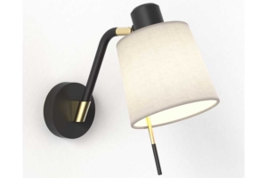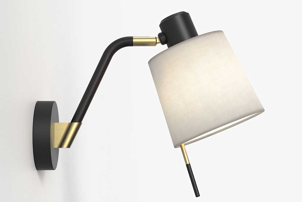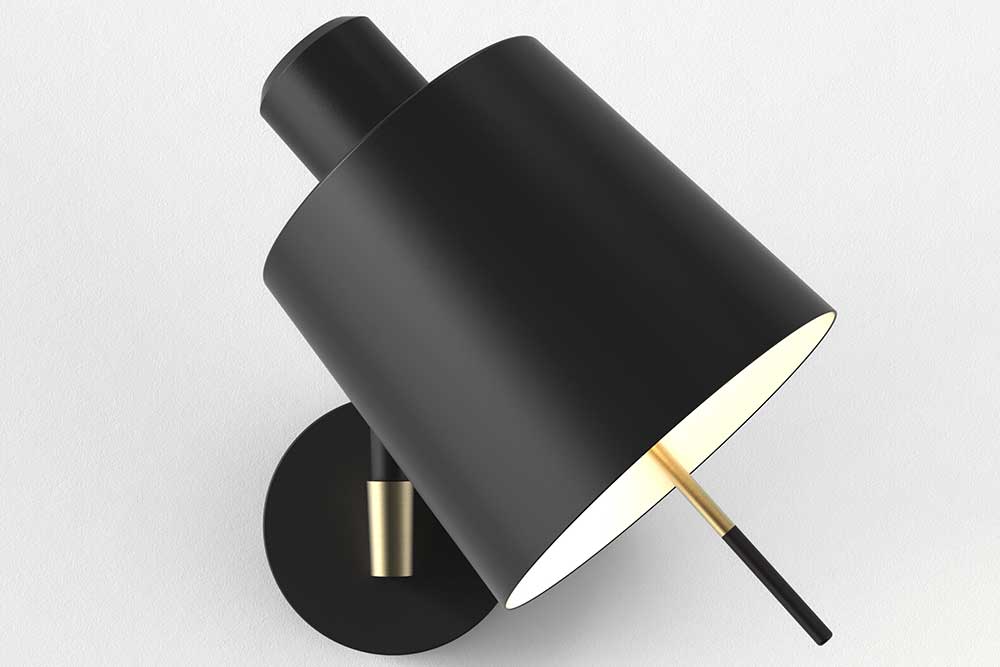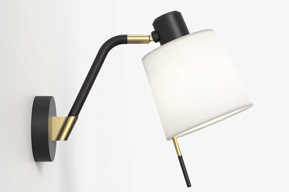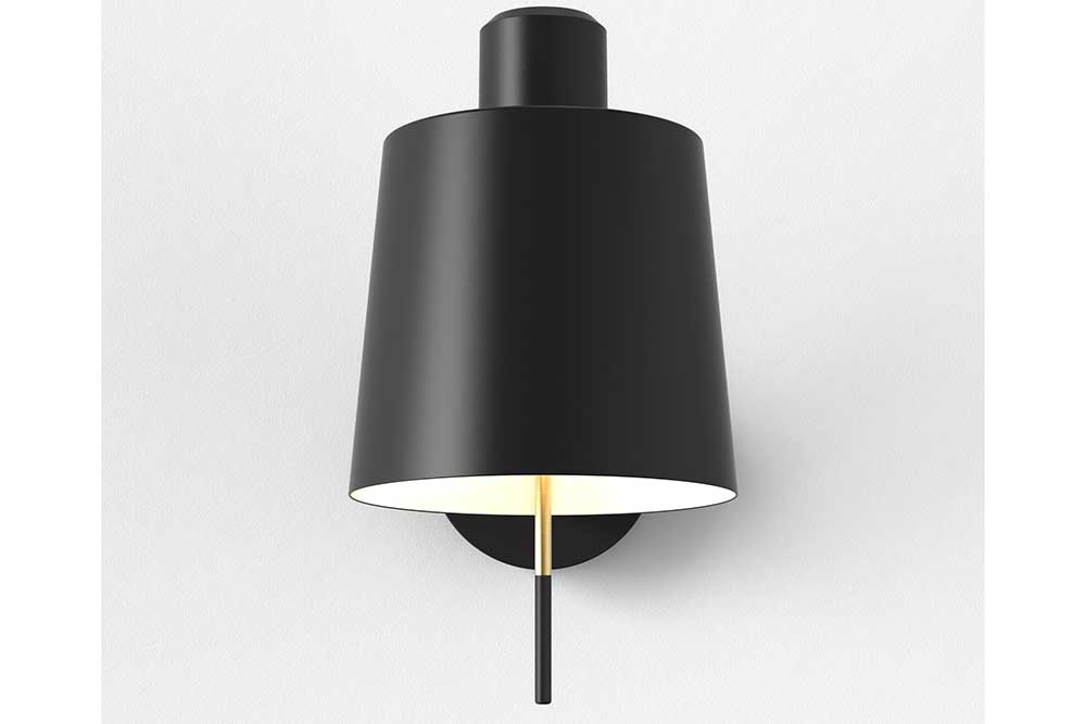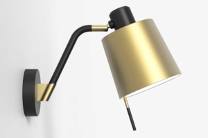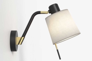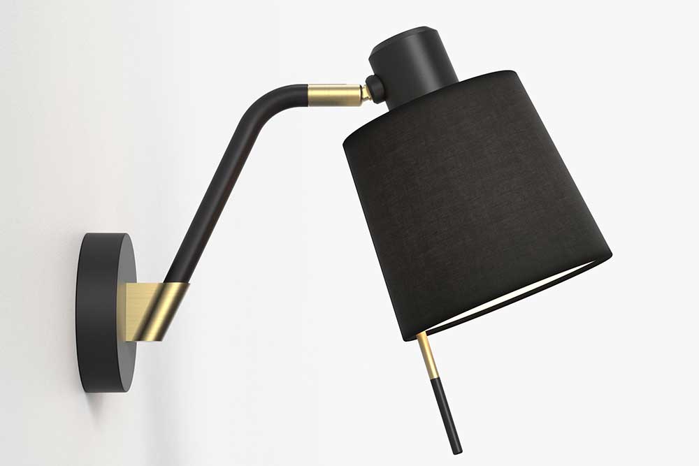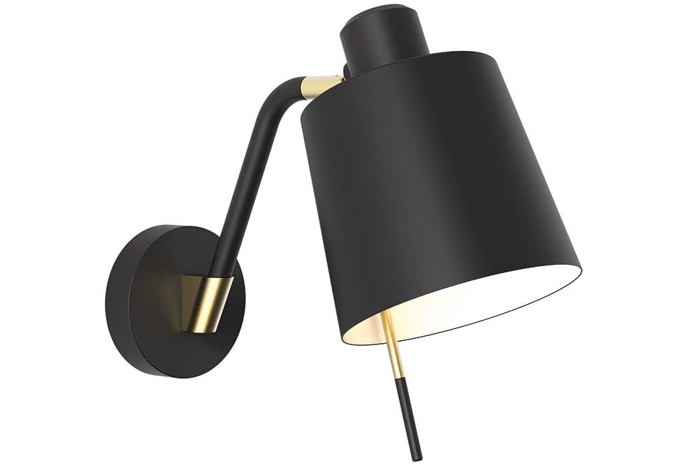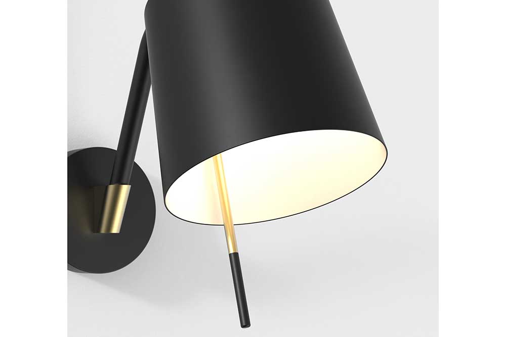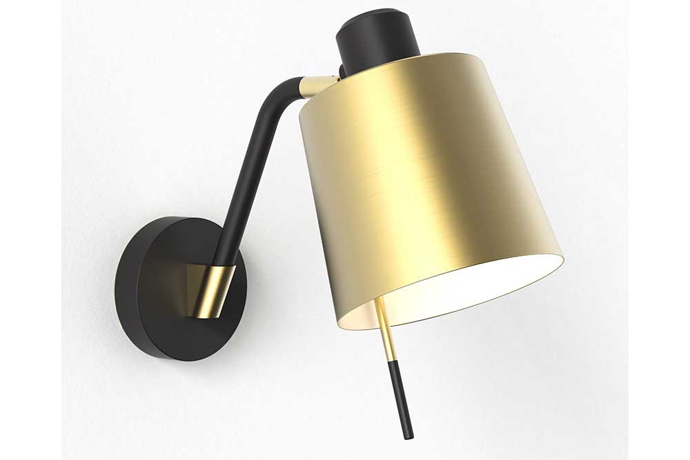 Edward Wall från engelska Astro. Stilfull och elegant design med påkostade materialval. Foten och armen består av en kombination av zink och stål vilka sedan har lackats i sober matt svart. De ledade delarna är färgade matt guld för att skänk snygg lyster och accent.