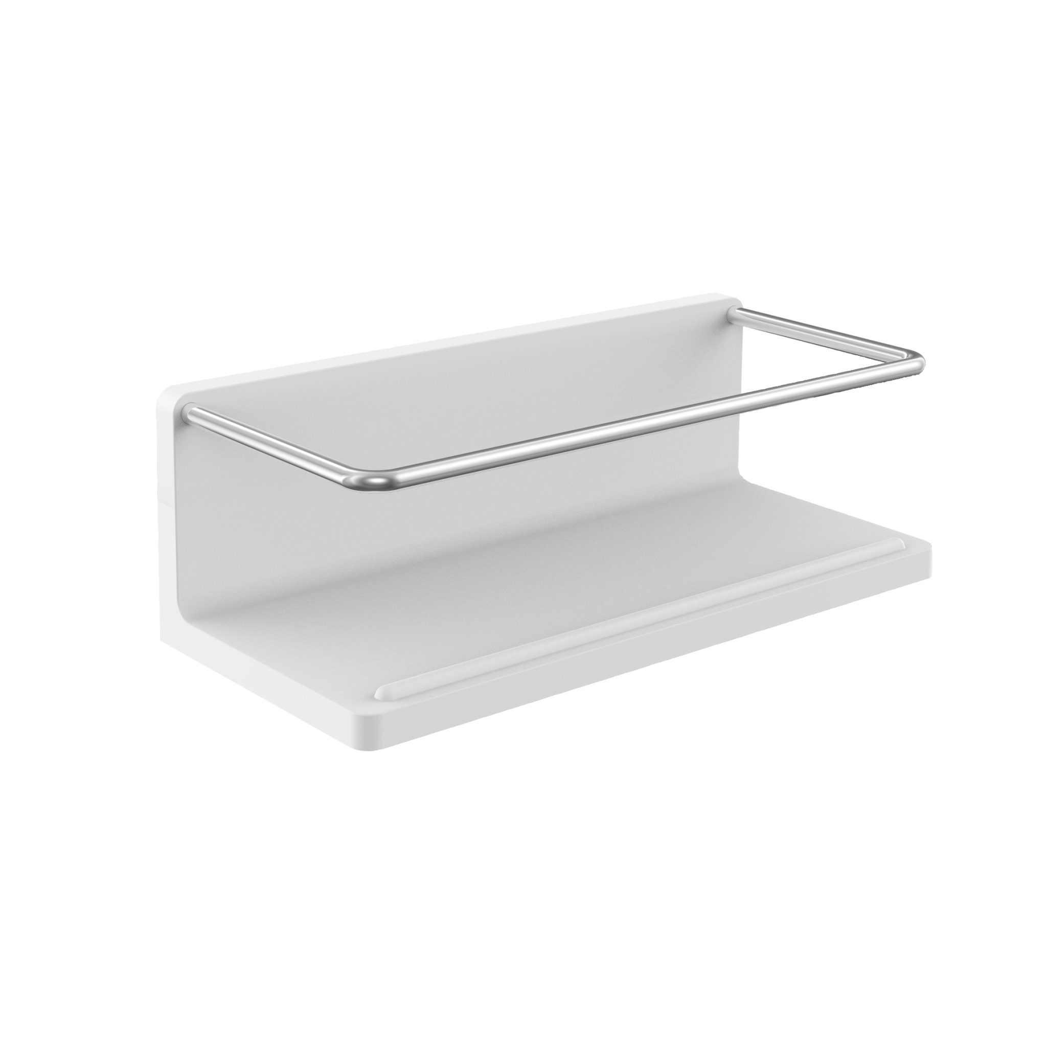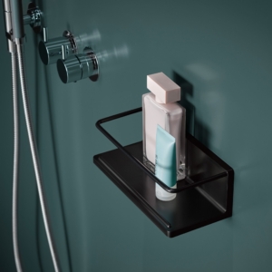 Round duschhylla för vägg. Tillhör serien Round från tyska Emco. Finns i två färger.