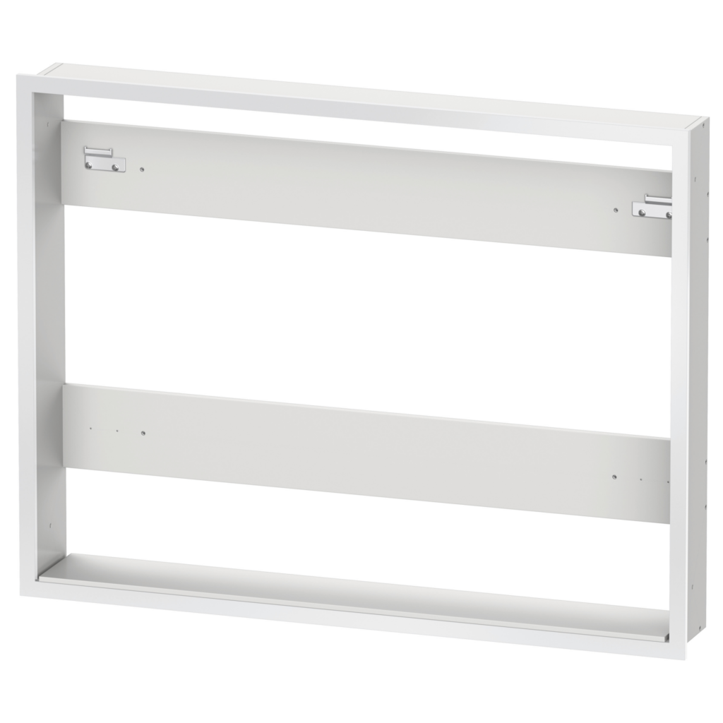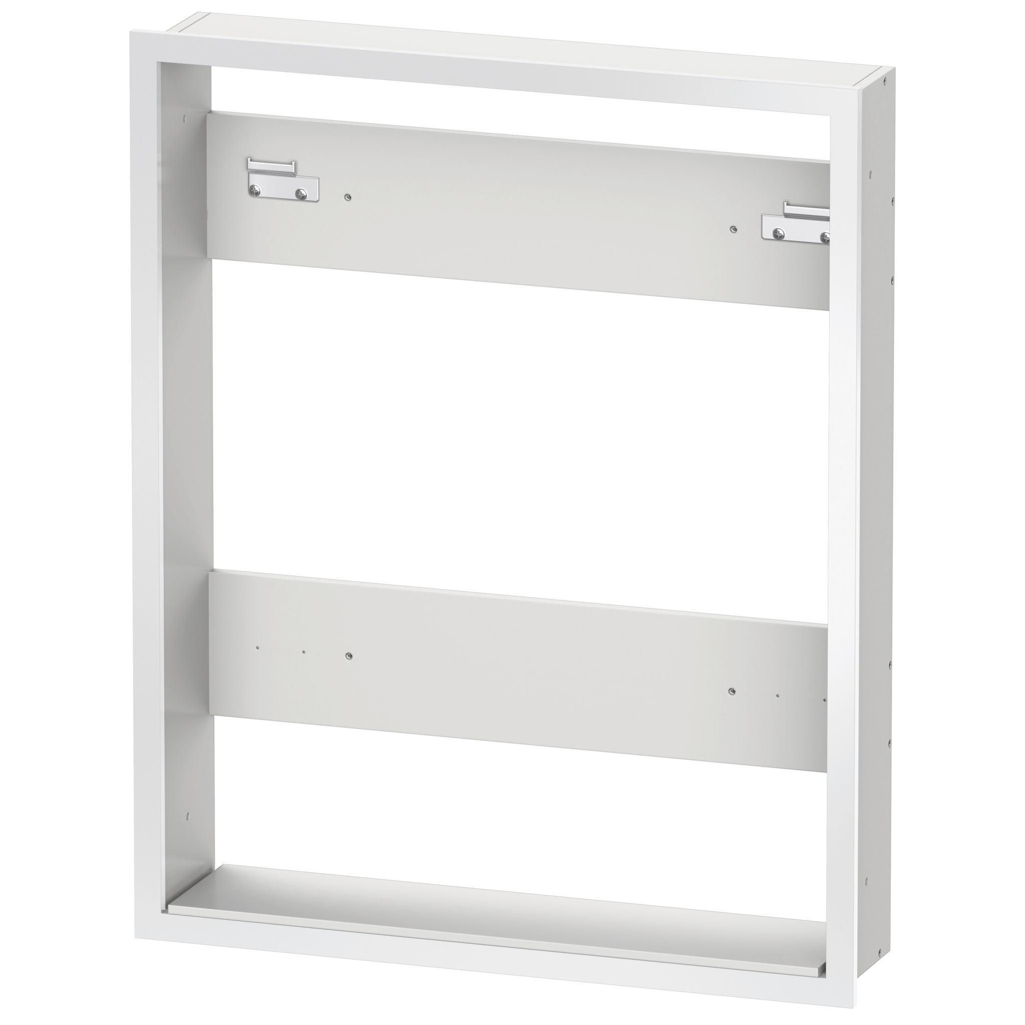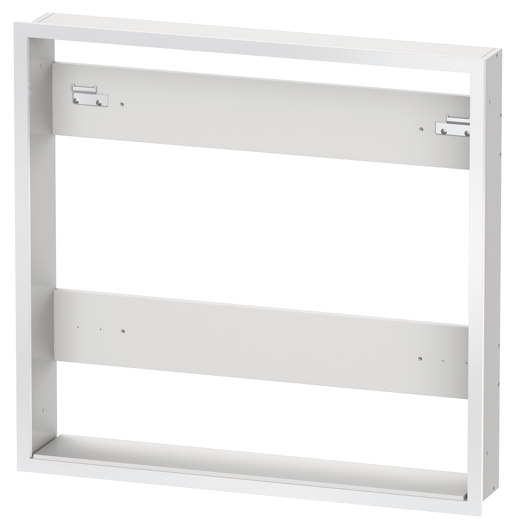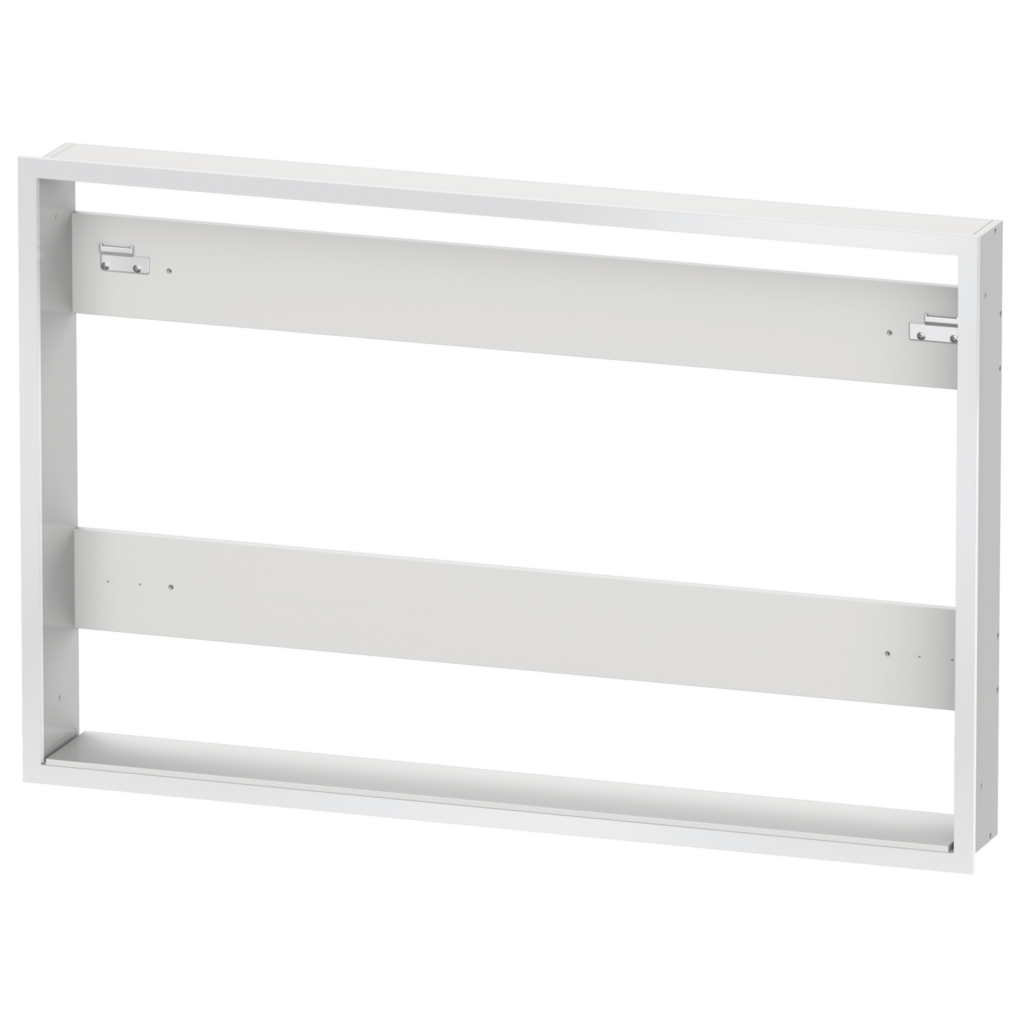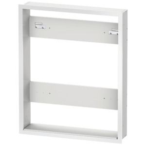LM inbyggnadsram till spegelskåp från Duravit. Finns i vit aluminium. Genom att bygga in spegelskåpet (som köps separat) med inbyggnadsram i väggen, frigörs mer yta i badrummet utan att välja bort förvaringsutrymme.