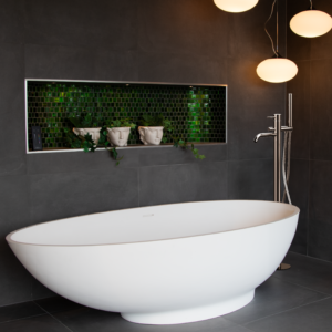 Installeras med fördel ovanpå färdigt golv med tätskikt enligt sockelprincipen.