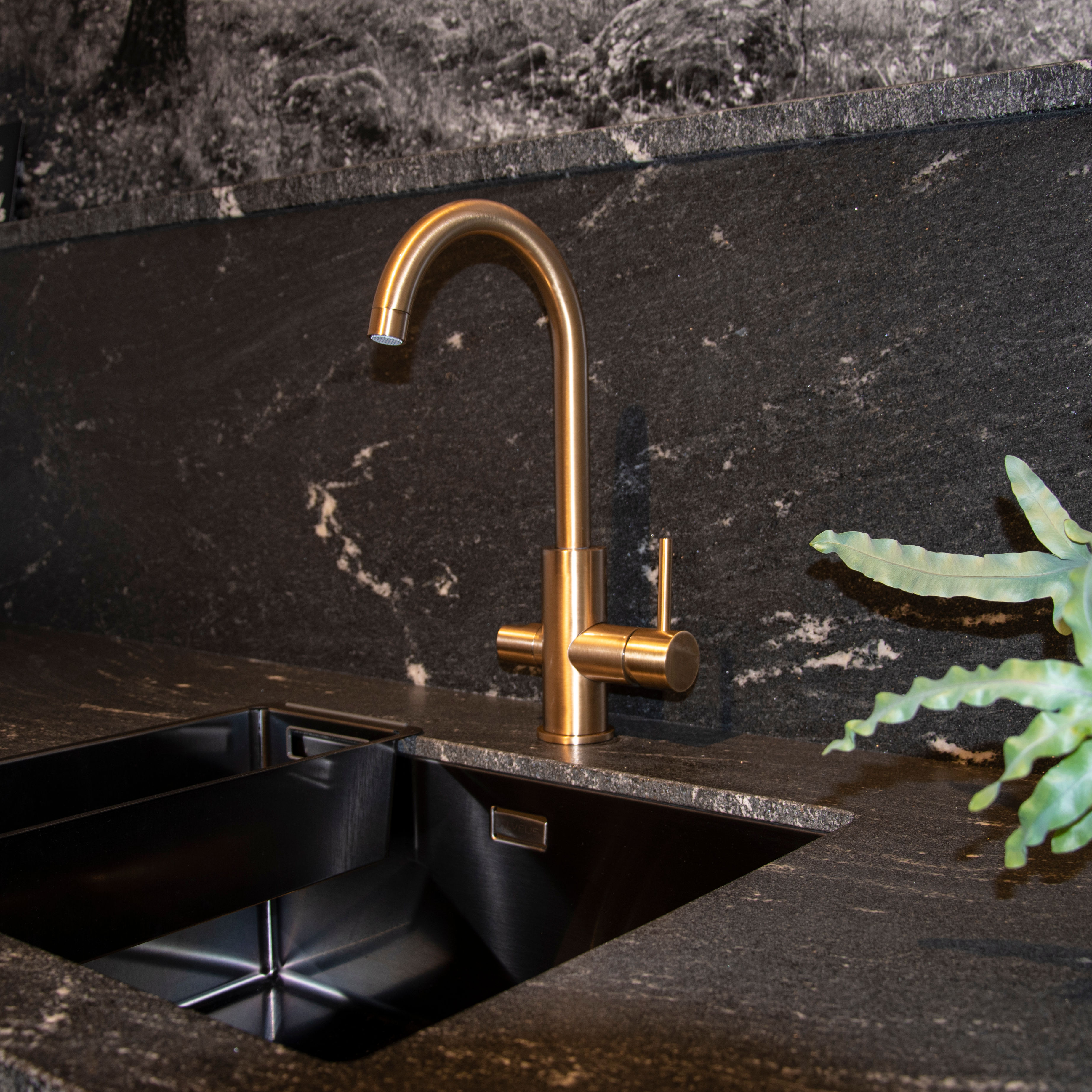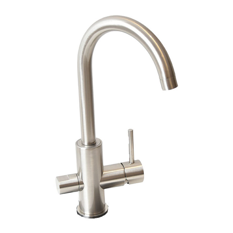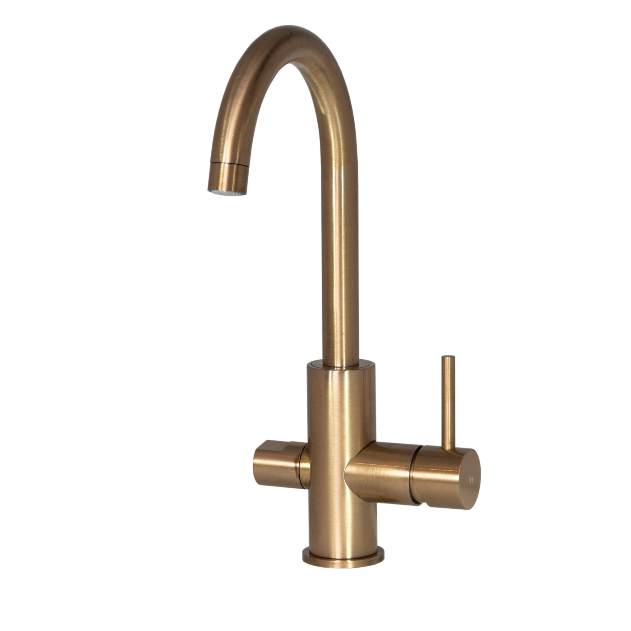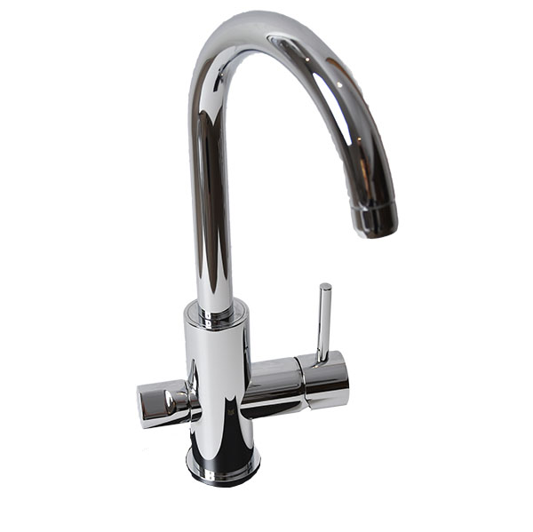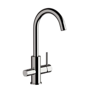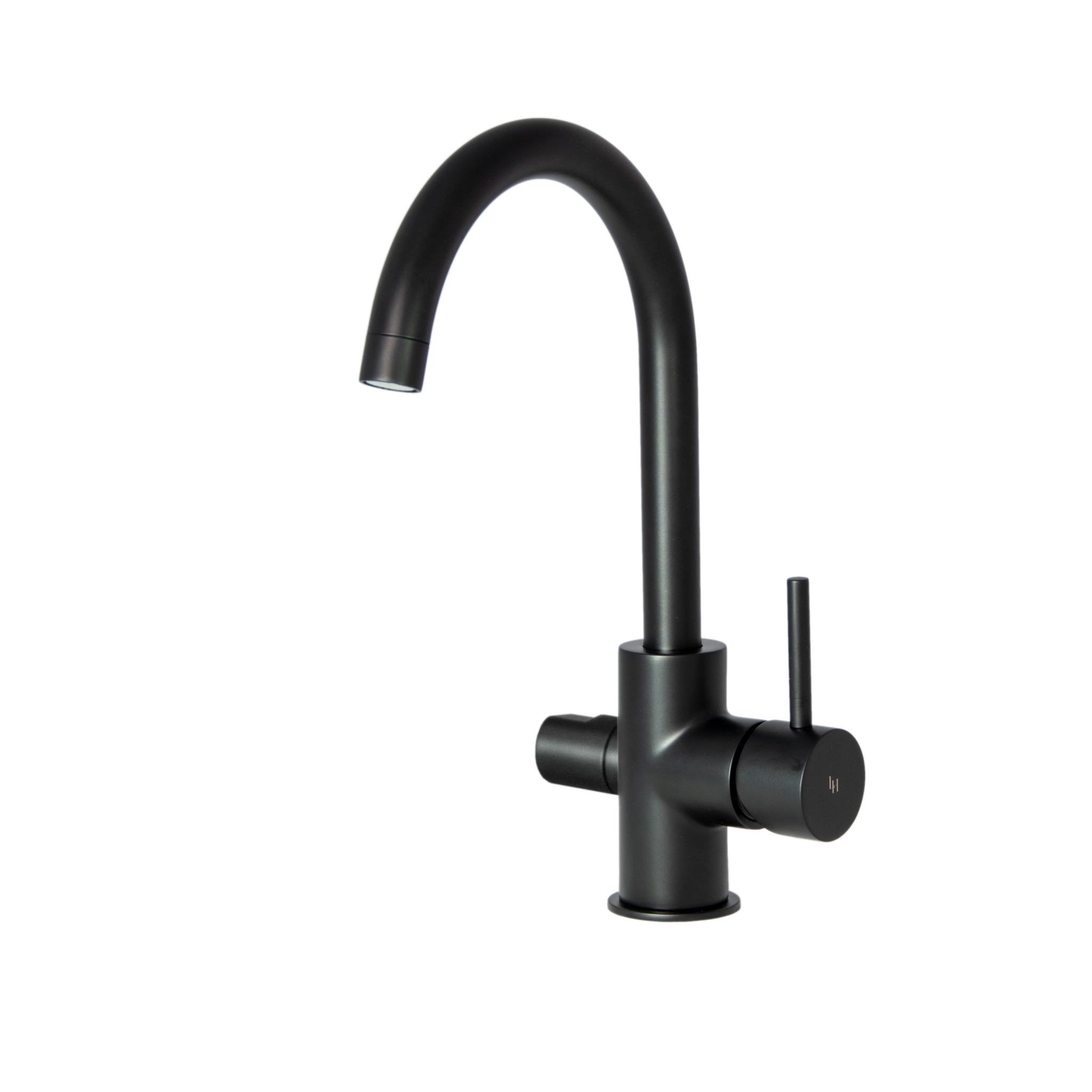 Irno D köksblandare har en rund design med böjd pip och är en 1-grepps köksblandare med manuell diskmaskinsavstängning.