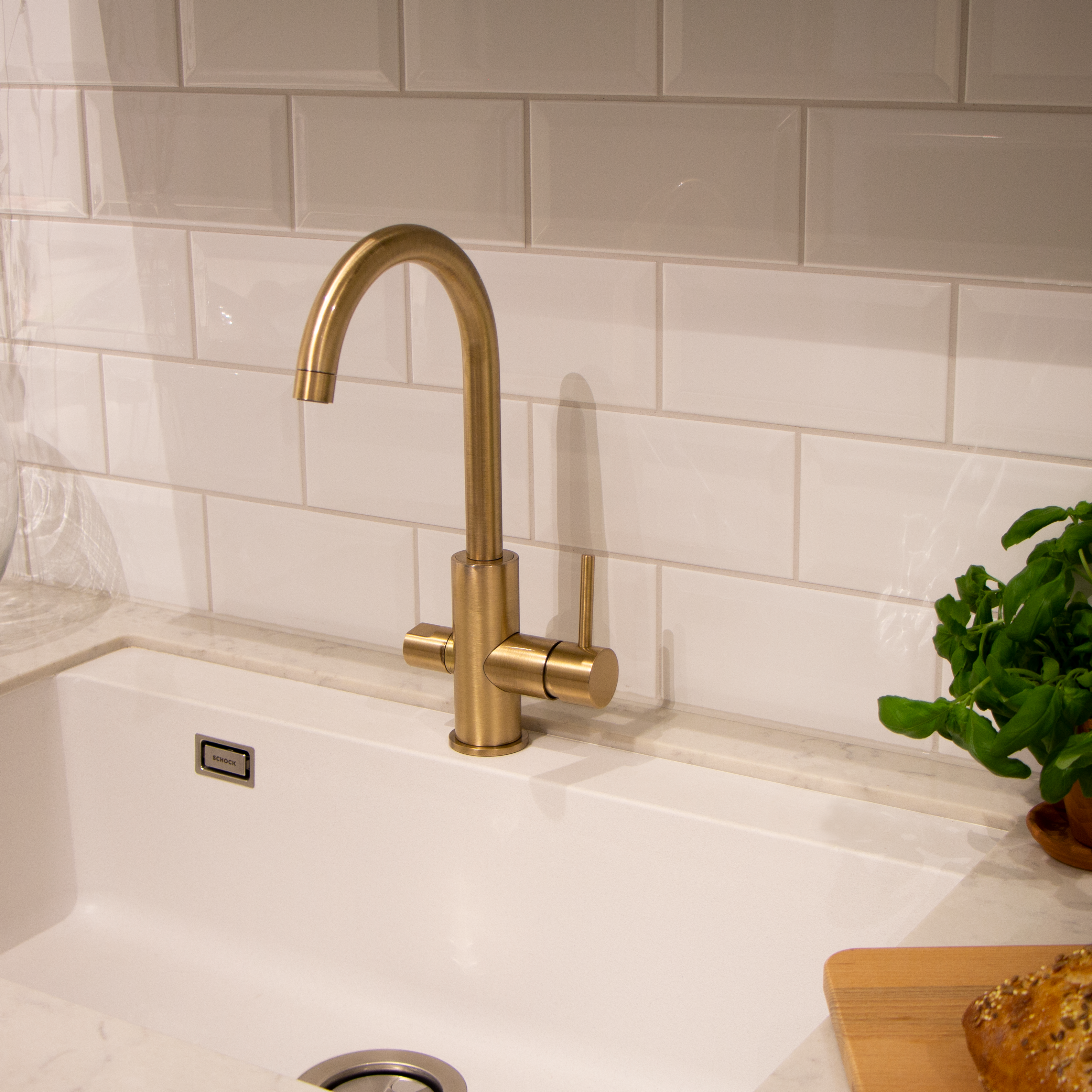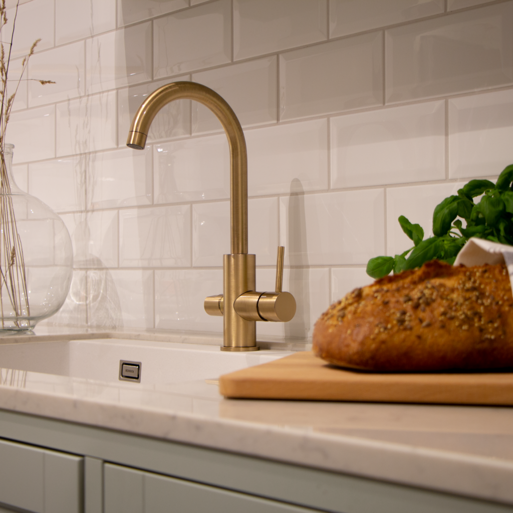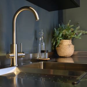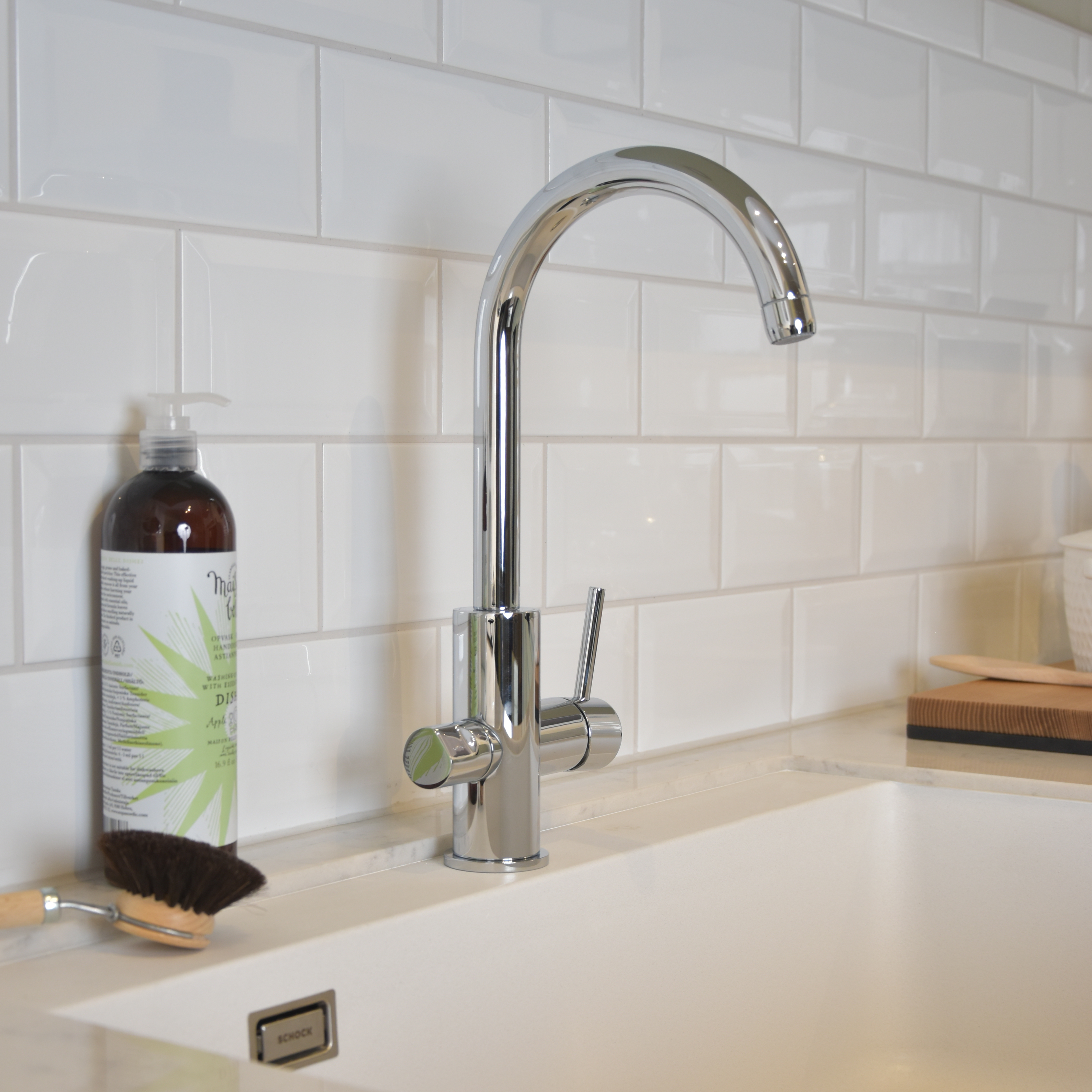 Irno D köksblandare har en rund design med böjd pip och är en 1-grepps köksblandare med manuell diskmaskinsavstängning.