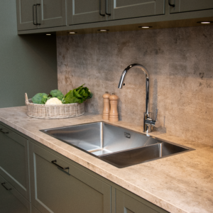 Irno U köksblandare är en 1-grepps blandare med utdragbar pip.