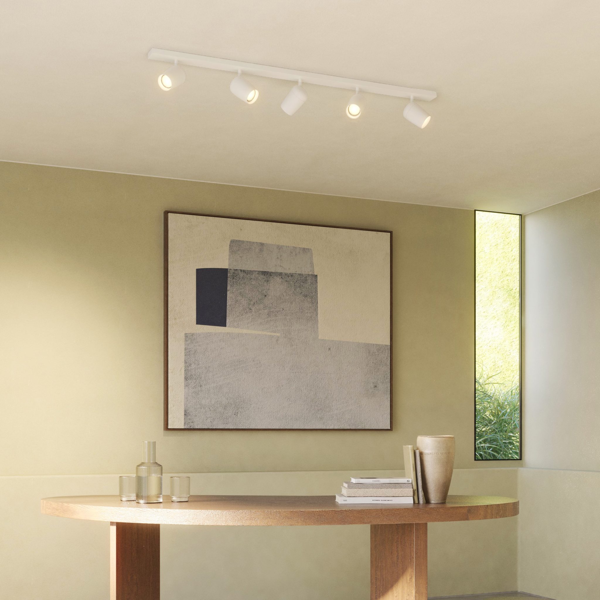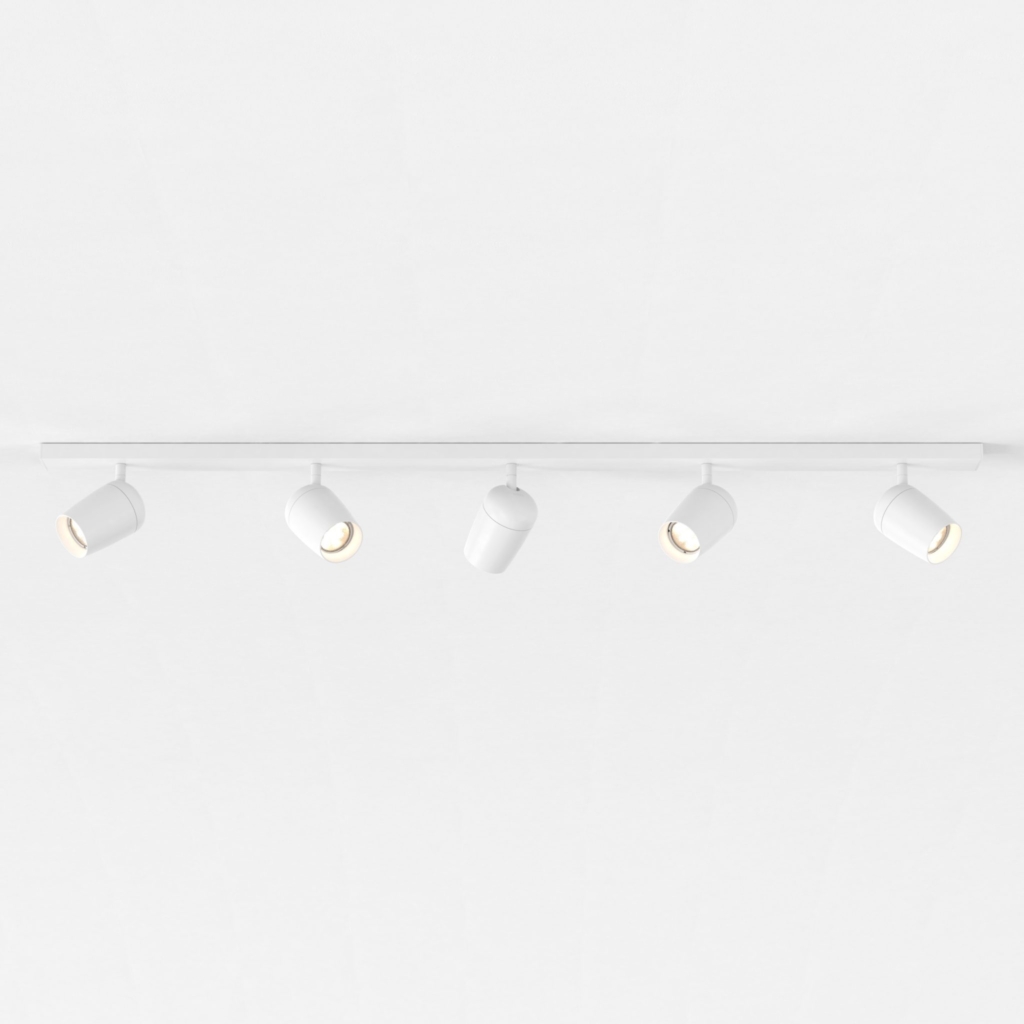 Koto Five Bar takspotlight. Lampan har fem ledade armar som kan rotera i 330 grader för punktbelysning. Finns i matt vit och matt svart finish.