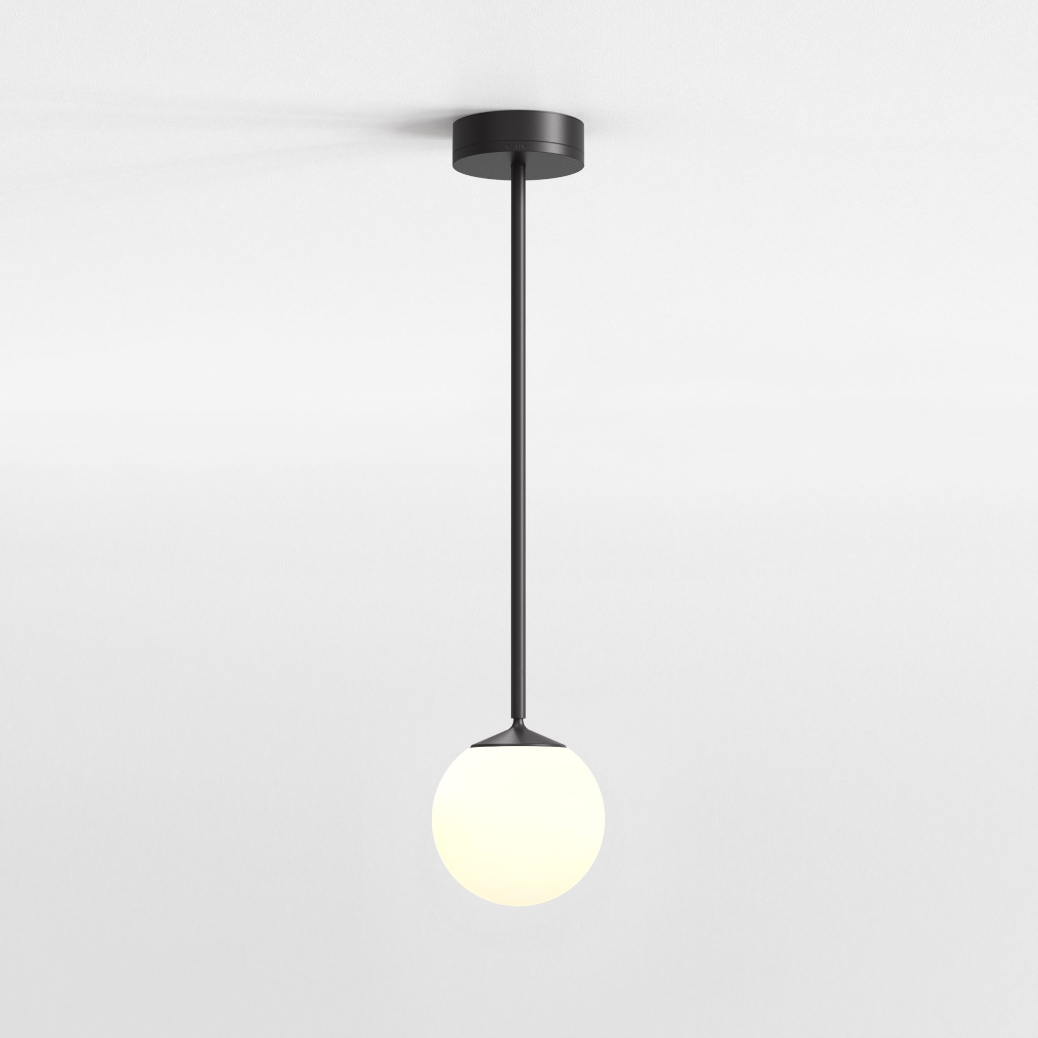 Nara Pendant taklampa från Astro. Rund takfot och rund skärmstav. Går att justera i olika höjder. Välj mellan flera olika glasskärmar. Finns i krom eller matt svart.
