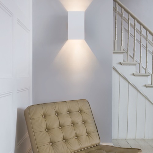 Denna lampa är gjord i gips och är målningsbar, perfekt om du vill ha samma färg på din lampa som väggen den sitter på, eller om du vill göra ett eget belyst konstverk som dekorerar din vägg.
