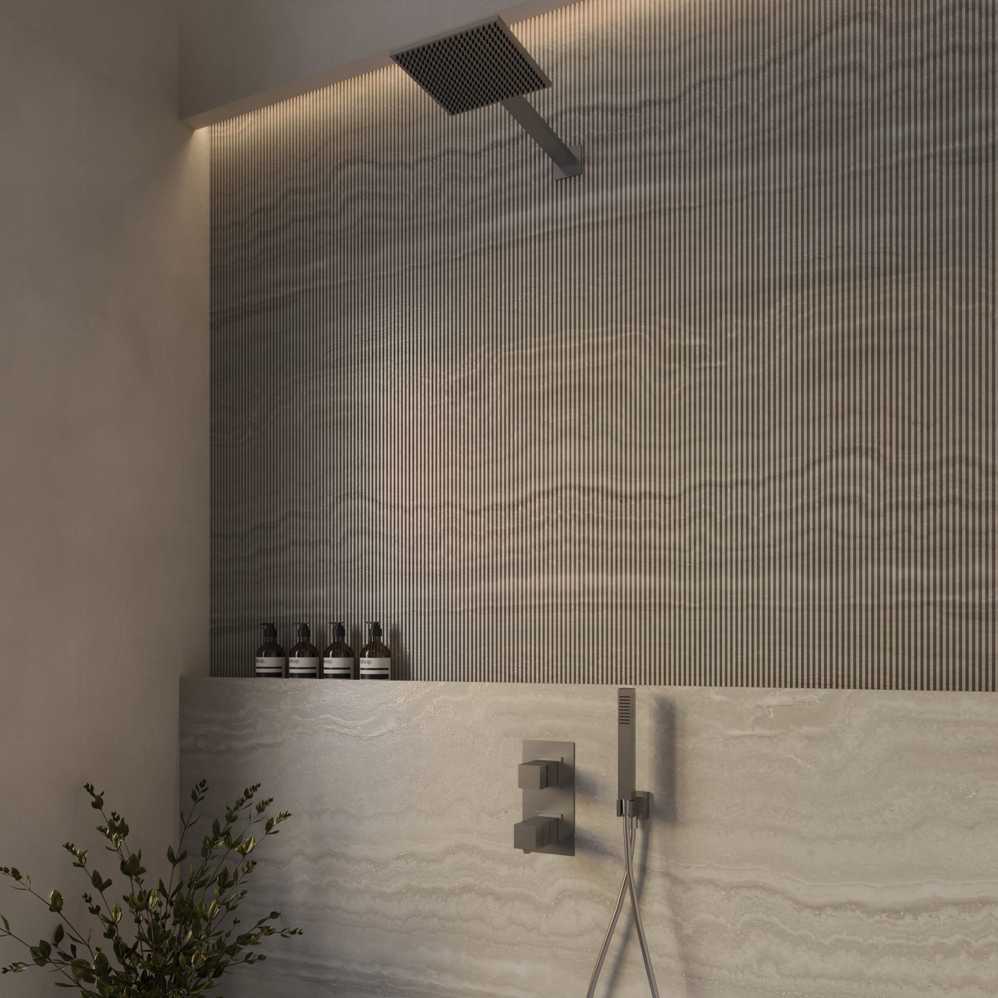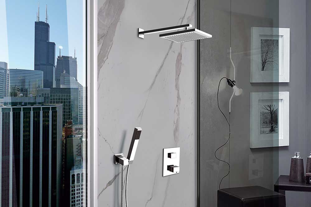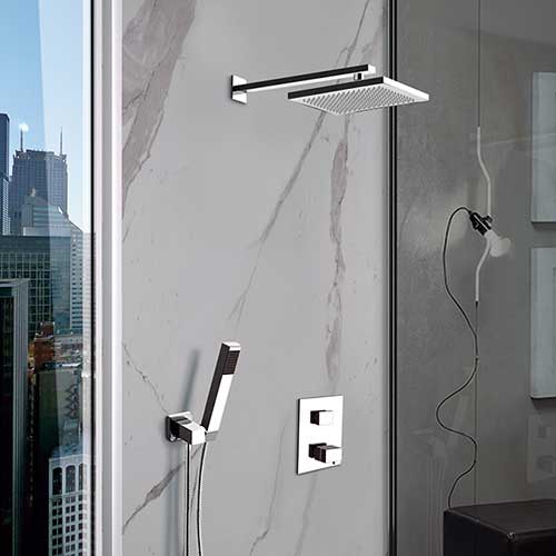Välj mellan tak eller väggmonterat duschhuvud.