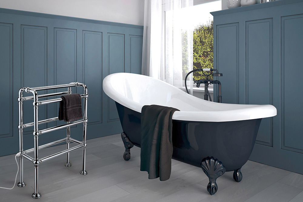 Rom handdukstork levereras med strömbrytarbox för dolt elmontage, IPX4 och drivs av en värmekabel (ej vätskefylld).