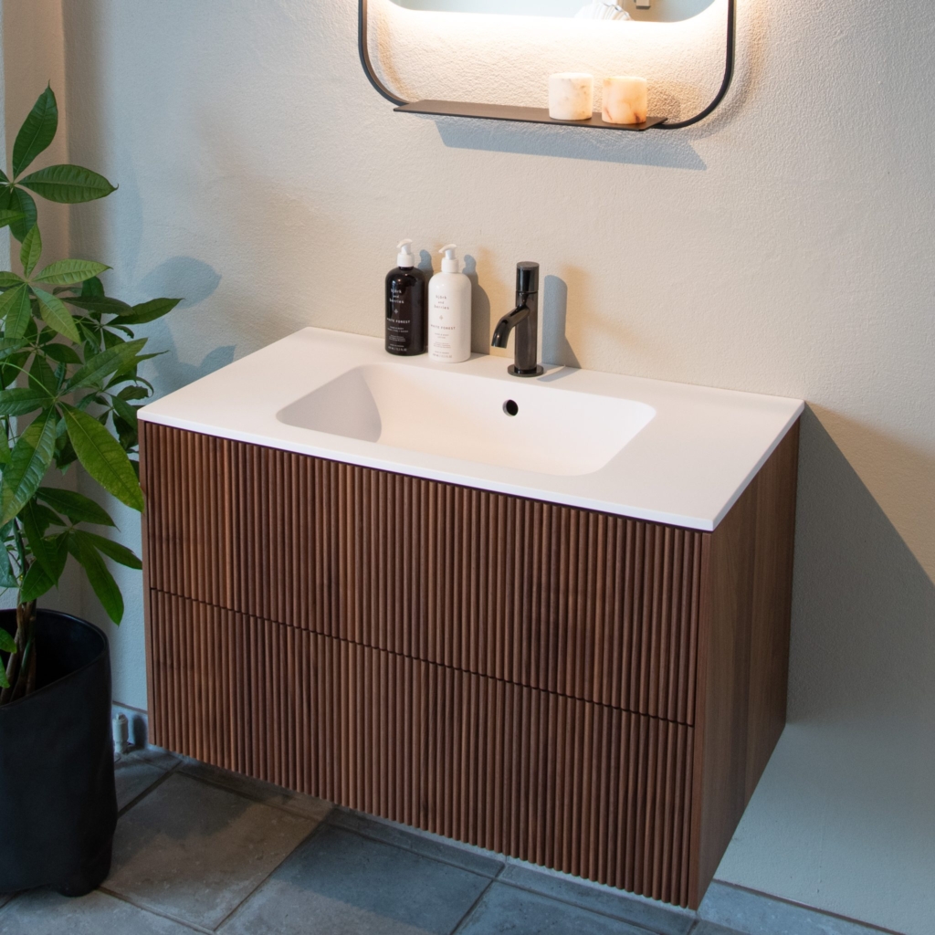 Kommoden levereras med ett tvättställ i matt vit Solid Surface vilket är en mineralmarmor. Tvättstället levereras som standard med 1 hål för blandare (2 blandarhål och dubbeltvättställ vid 1224 mm bredd) men kan vid begäran beställas utan håltagning.