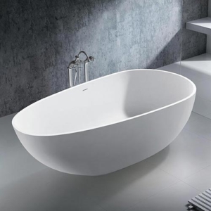Smooth fristående badkar från LH. Det ovala badkaret i kompositmaterialet Solid Surface har mjuka former med en bredare och en smalare ände.