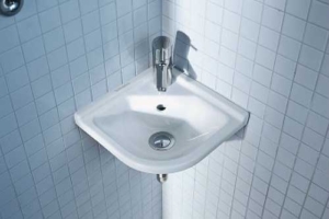 Hörntvättställ med 1 blandarhål. Vägghängt inklusive bultsats.
