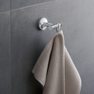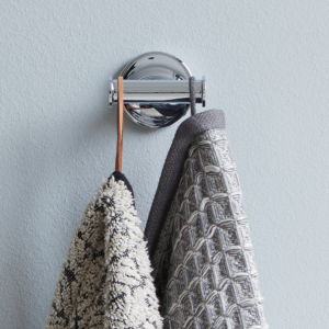 Krokar, tvålkoppar, handukshållare och pappershållare finns i en komplett serie i Starck T.