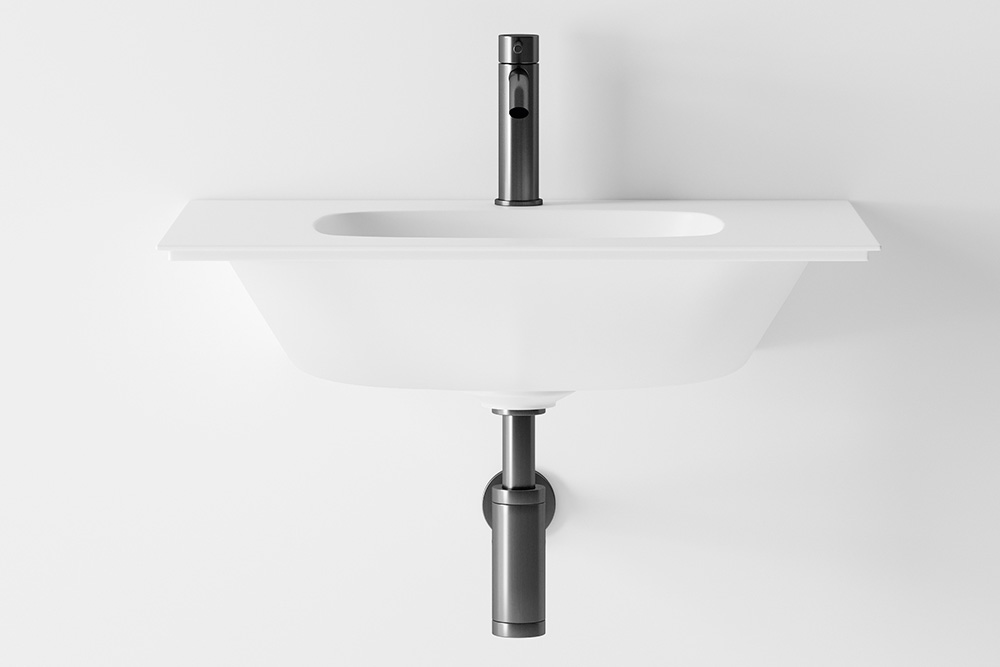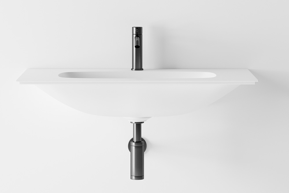 Tino tvättställ för vägg från LH. Ett unikt tvättställ med svepande former i kontrast till de väl tilltagna avställningsytorna.