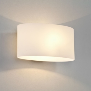 Tokyo 250 vägglampa. Interiörbelysning med en matt vit glasskärm. Kromat väggfäste.