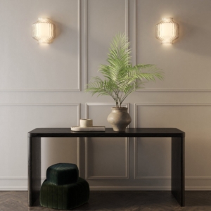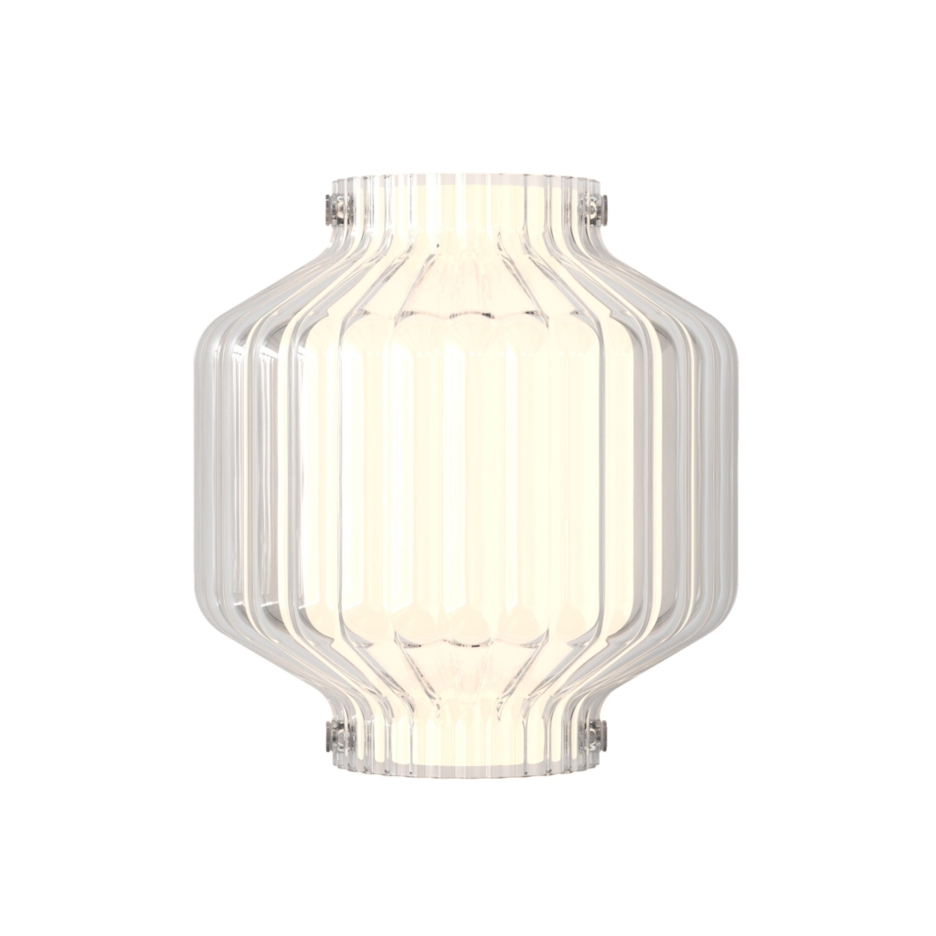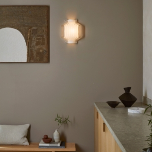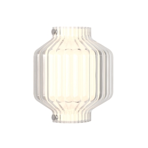 Toro interiörbelysning för placering på vägg. En vägglampa med en skärm i klarglas som tagit inspiration från de traditionella asiatiska lyktorna. Toro ger ett mjukt och behagligt ljus tack vare den inre frostade skärmen.