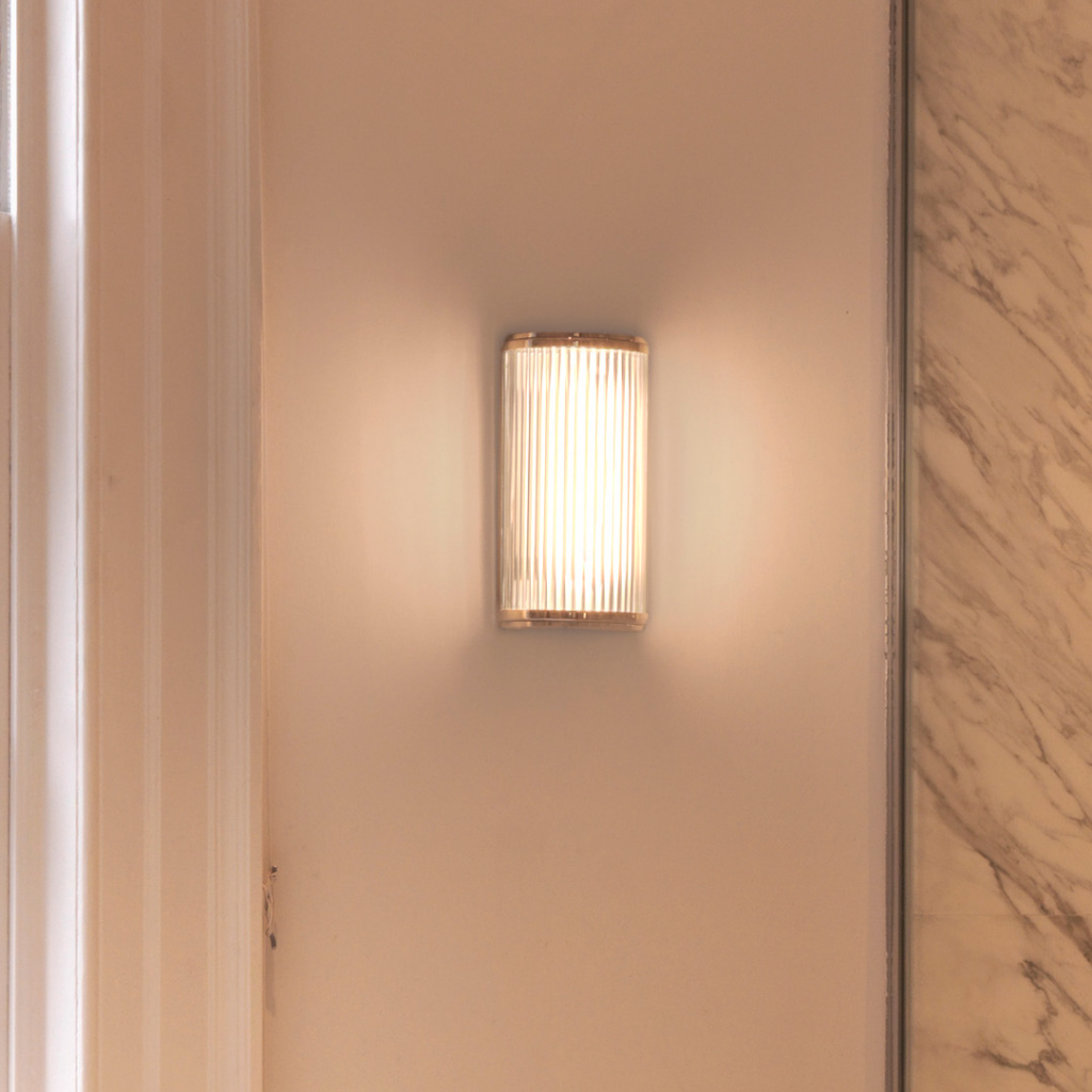 Versailles 370 LED från Astro. Väggarmatur som passar både badrum och övrig inredning. Glasskärm konstruerad av individuella glasstavar för ett unikt och trivsamt ljussken.