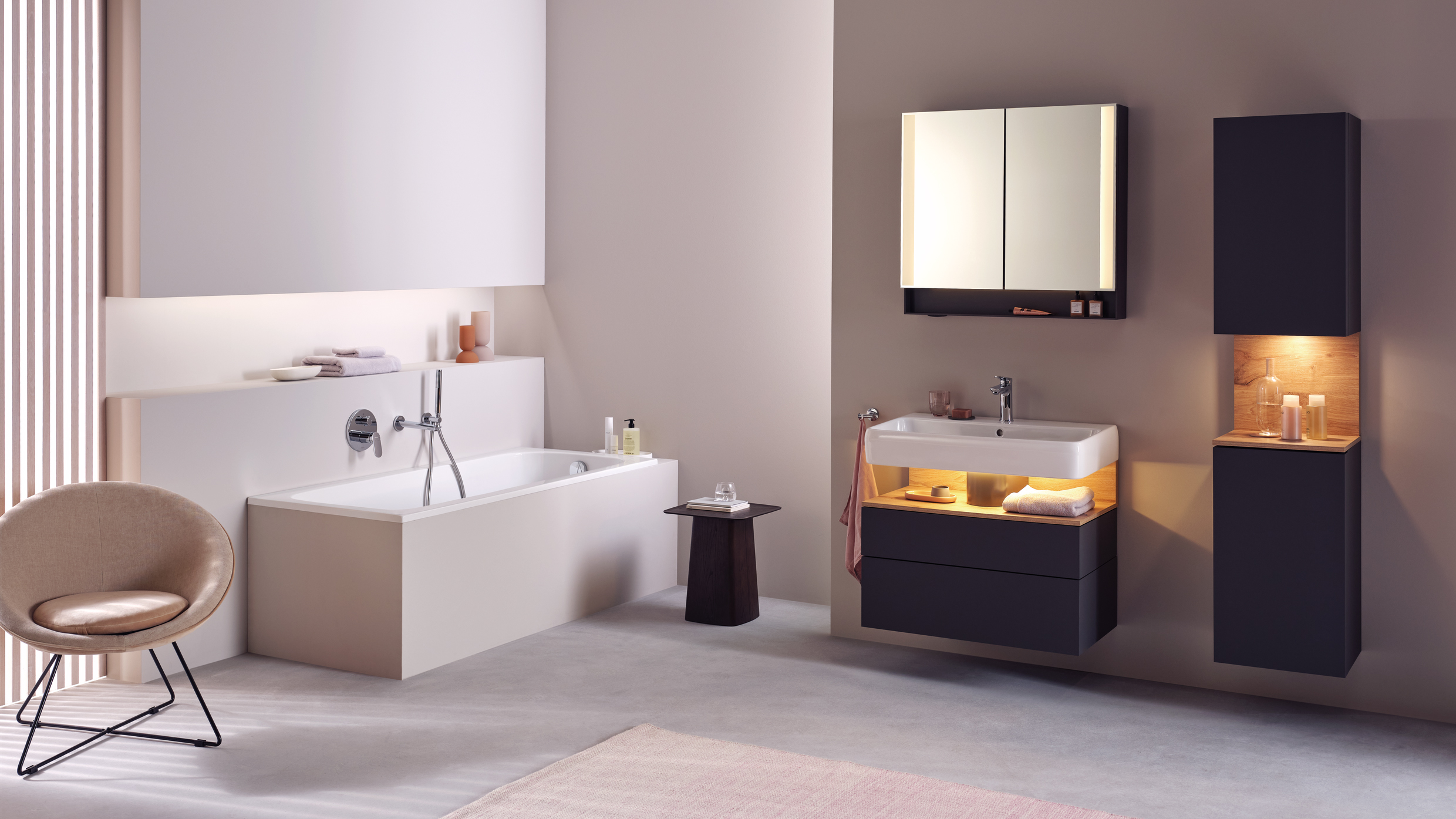 Varje del av Qatego-serien är inspirerad av naturen och har en naturlig känsla som ger en känsla av lugn och harmoni i ditt badrum. Med ytor som påminner om trä, keramik och natursten, ger Qatego en känsla av att vara omgiven av organiska material som skapar en fridfull atmosfär.