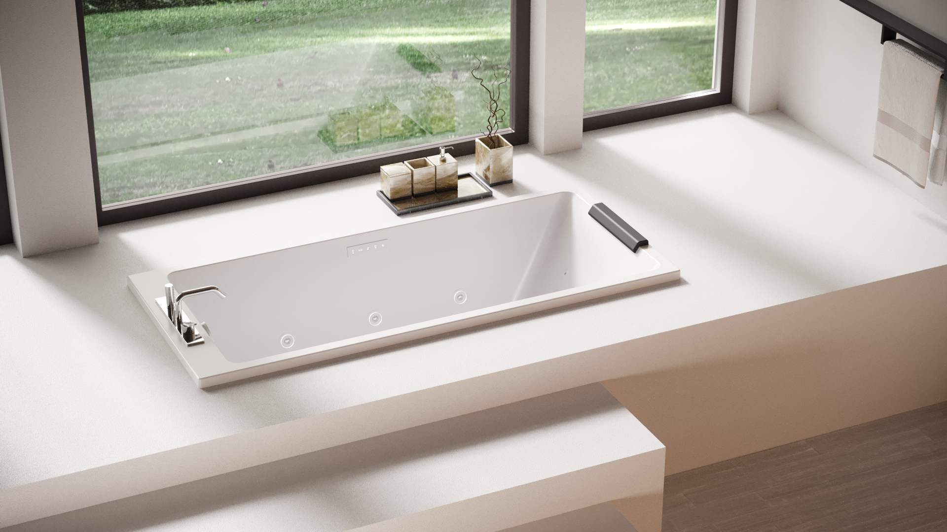 Med möjlighet att montera blandaren enligt dina egna önskemål på en av kortsidorna, ger detta badkar dig full kontroll över din badrumsdesign. För en extra touch av lyx finns även bubbelmassage-system tillgängligt för en komplett avkopplande upplevelse.